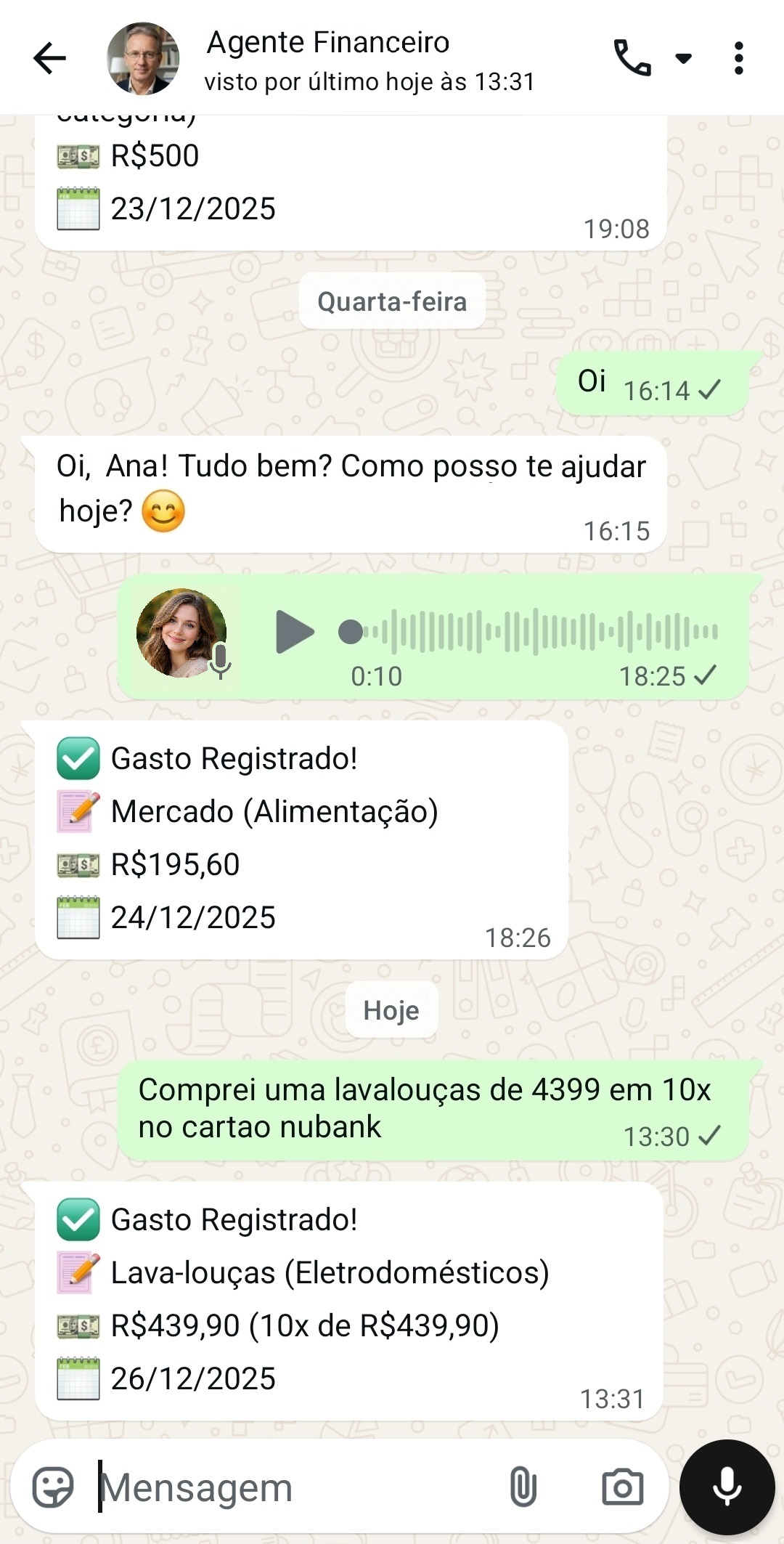 "Eu sempre esquecia de anotar os gastos pequenos. Agora, mando um áudio saindo da padaria e pronto."